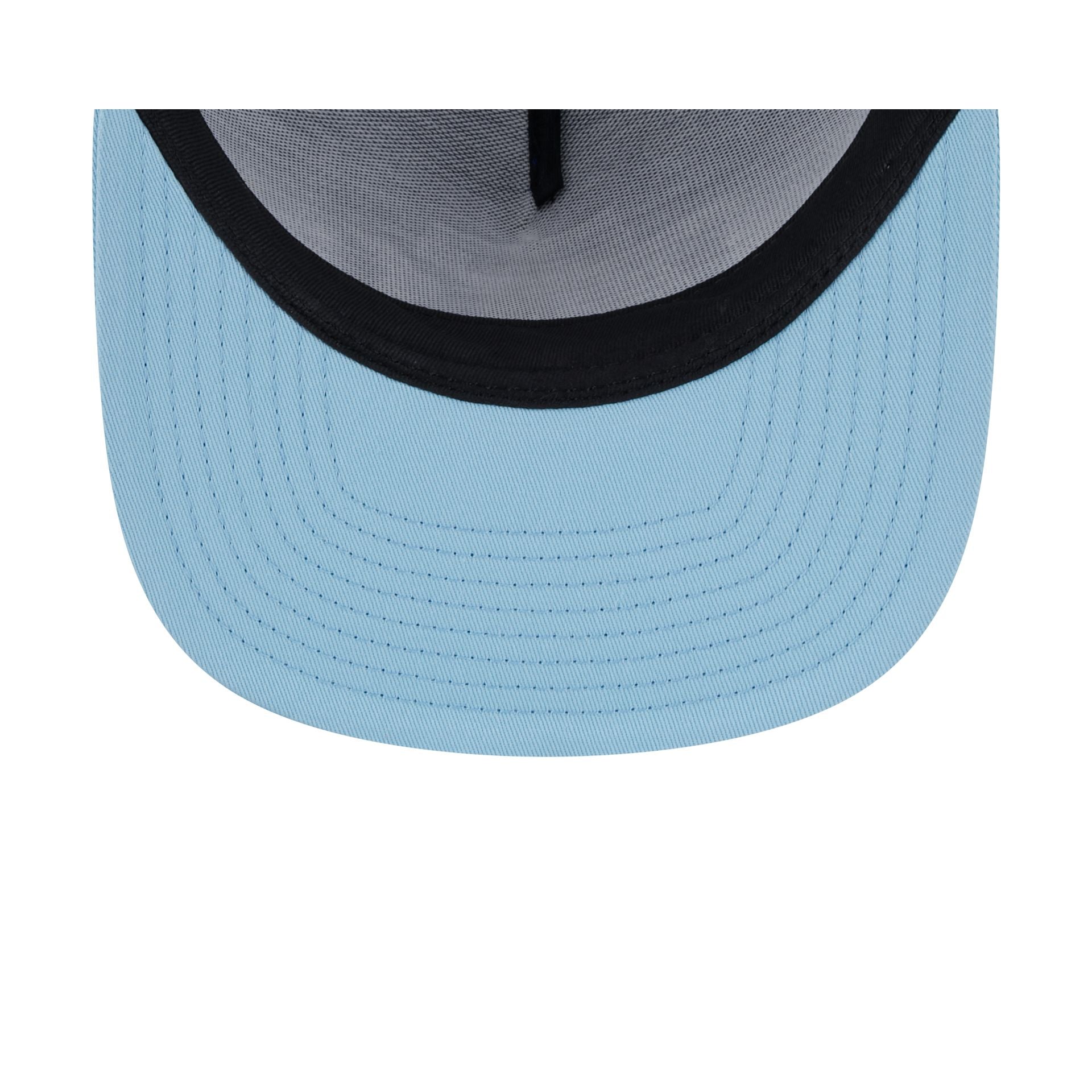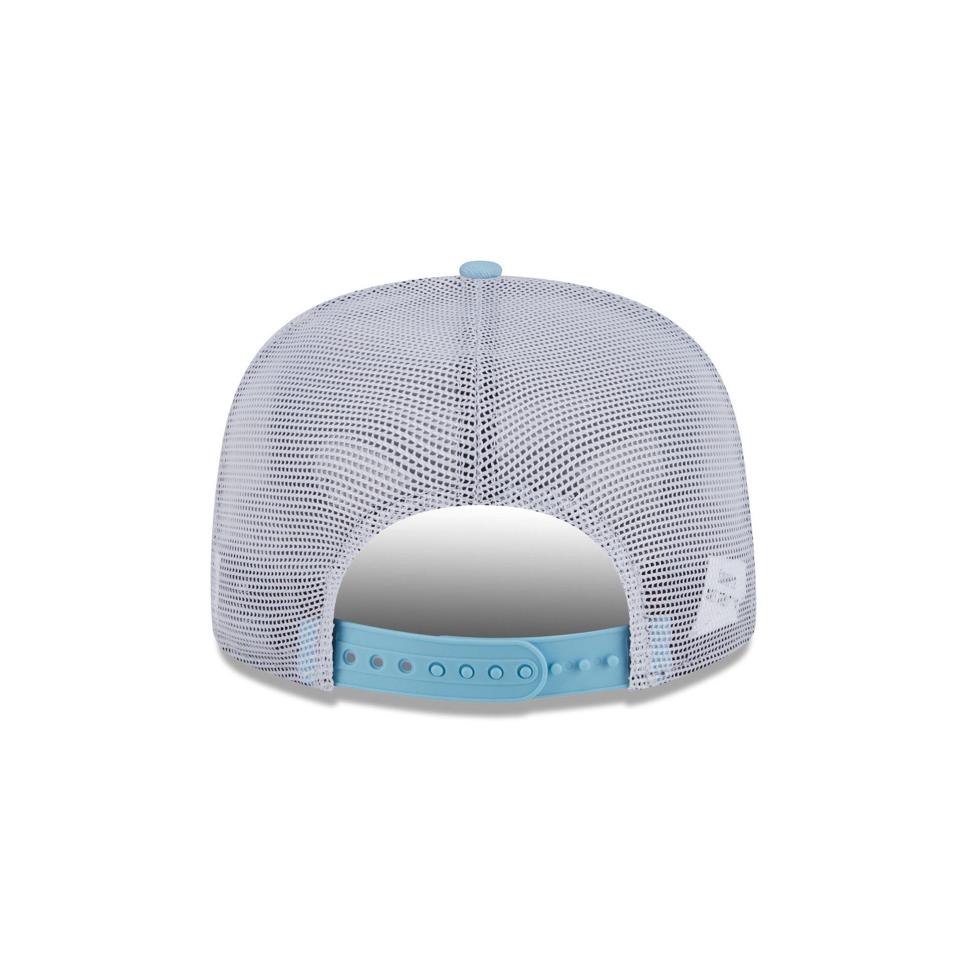 The 1984 Olympics Team USA 9FIFTY A-Frame Trucker features an embroidered 1984 Olympics logo at the front panels with a mesh back, a snapback closure at the rear, and a light blue visor and undervisor.