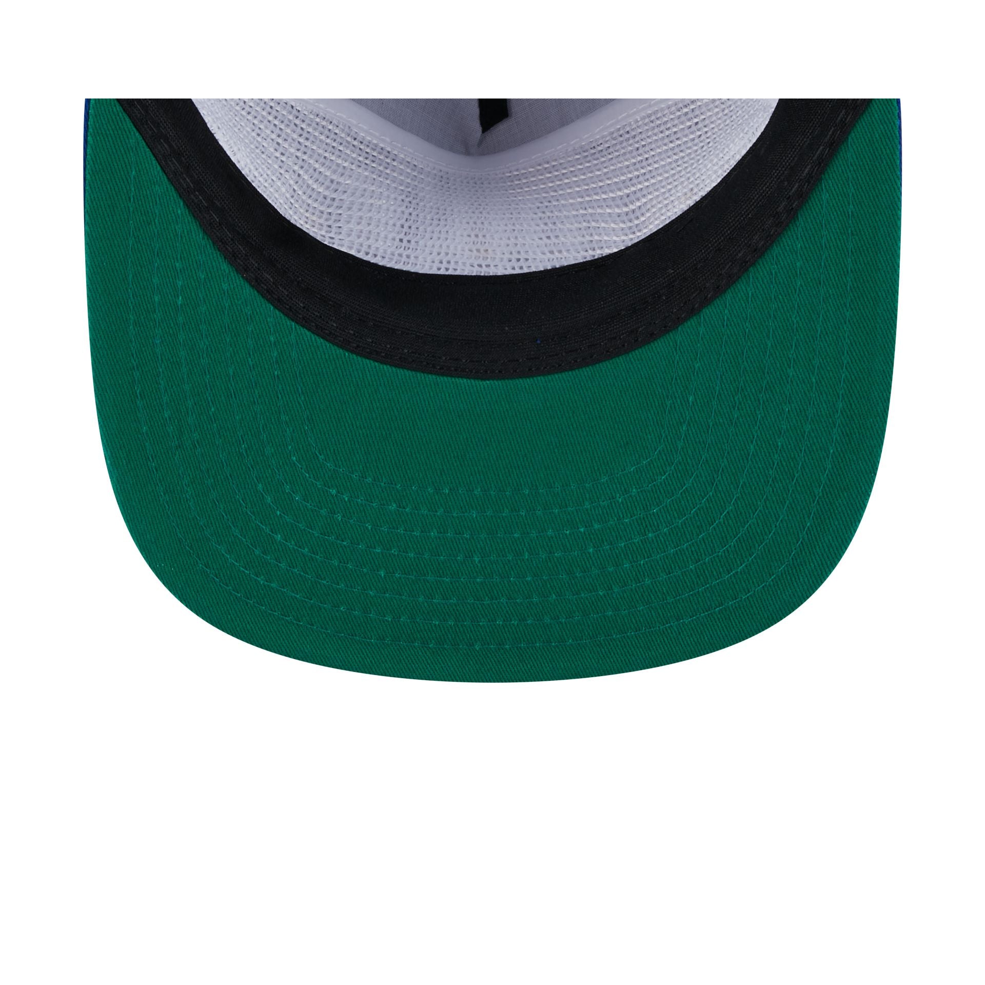 The 1984 Olympics Team USA Royal Blue Golfer features an embroidered 1984 Olympics logo at the front panels wit an LA 84 tag on a snapback closure at the rear and a green undervisor.