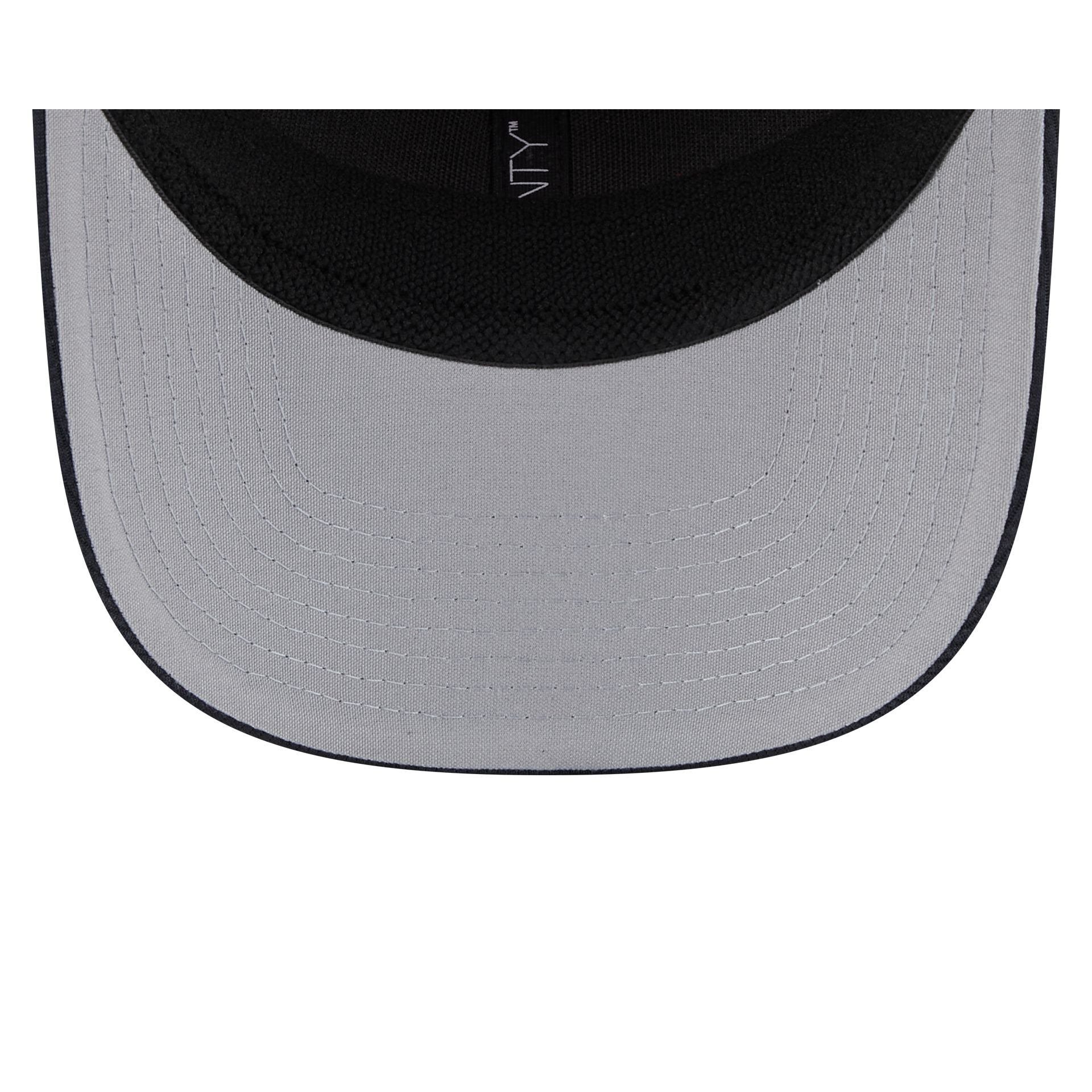 The Boston Red Sox 2025 Batting Practice 9SEVENTY Trucker Hat features an embroidered Red Sox logo at the front panels with a mesh back, a snapback closure at the rear, and a gray undervisor.