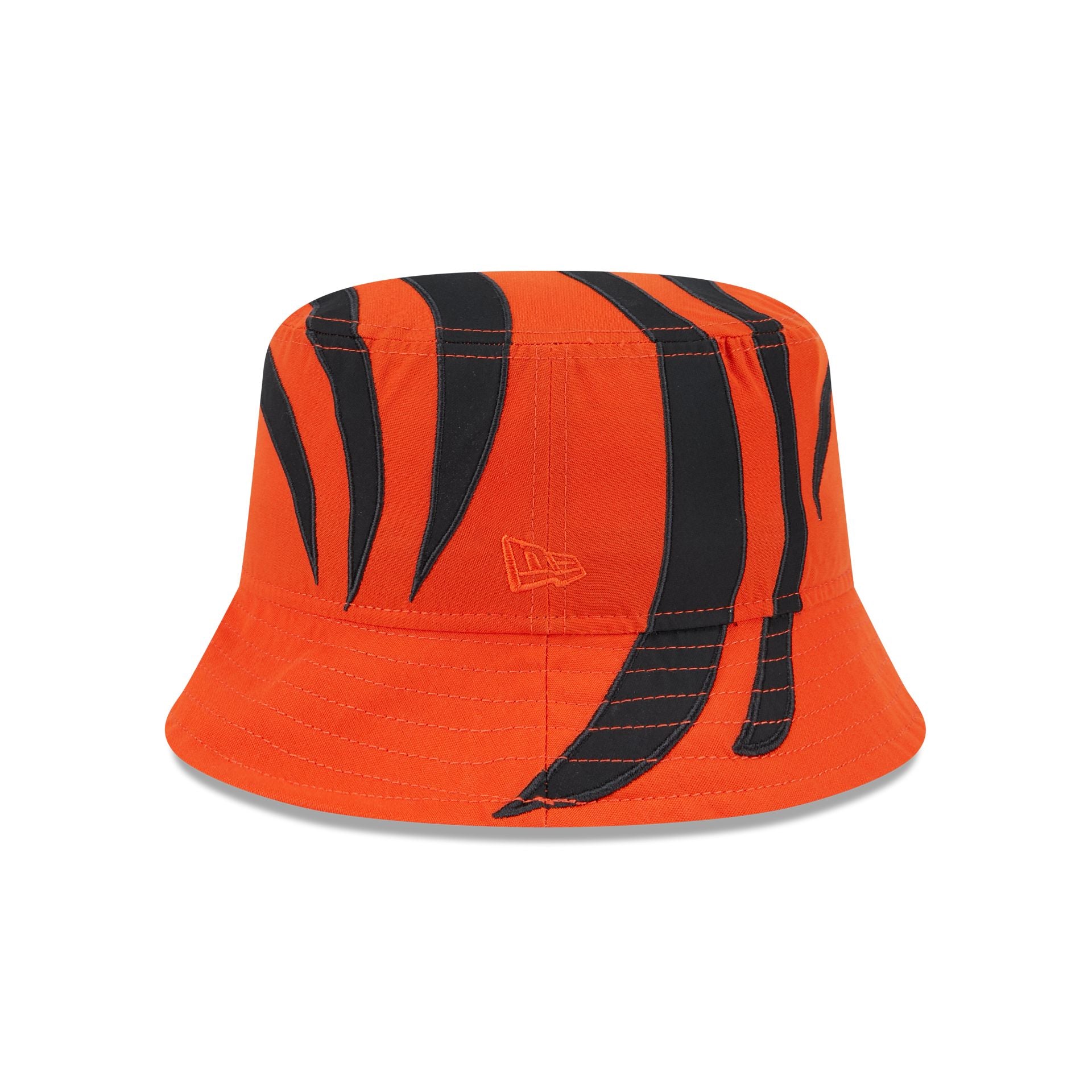 The Cincinnati Bengals Helmet Bucket Hat features an embroidered Bengals helmet design throughout.