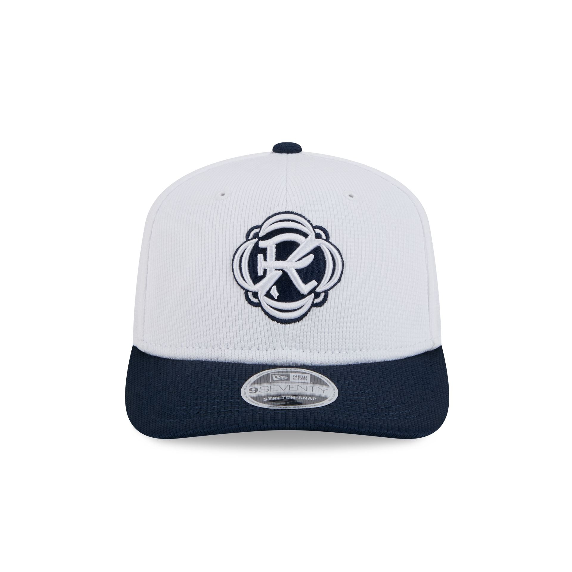 The New England Revolution 2025 Jersey Hook 9SEVENTY Stretch-Snap features an embroidered Revolution logo at the front panels with a patch at the right-wear side and a snapback closure at the rear.