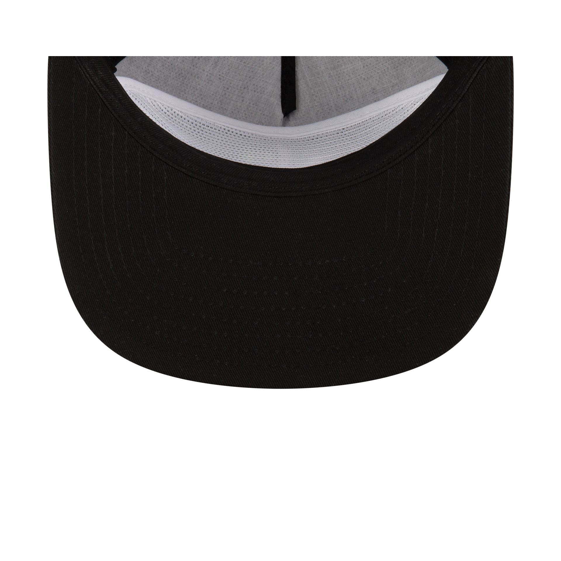The New Era Golf Black Logo Golfer features an embroidered NEG logo at the front panels with a matching wordmark above a snapback closure at the rear and a gray undervisor.