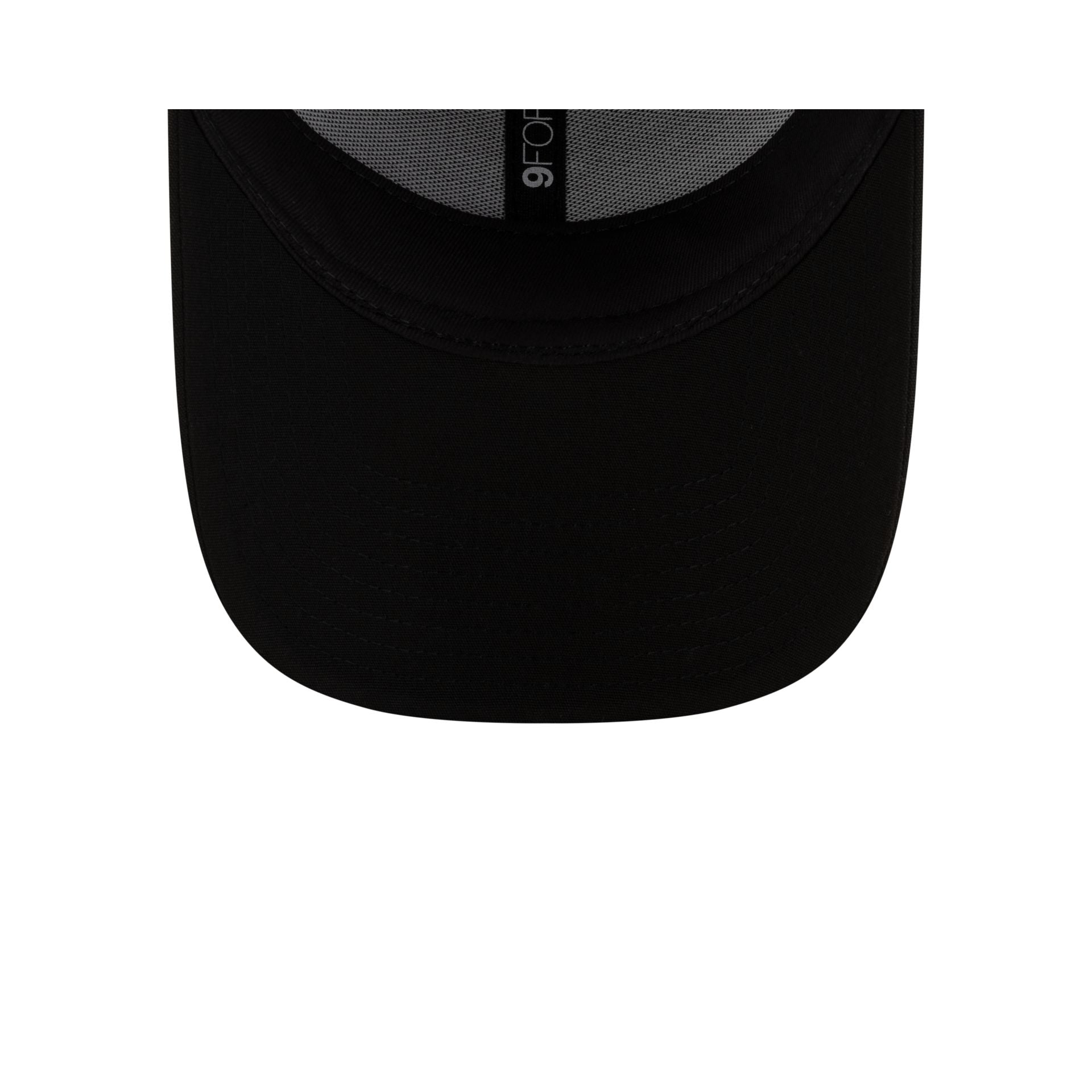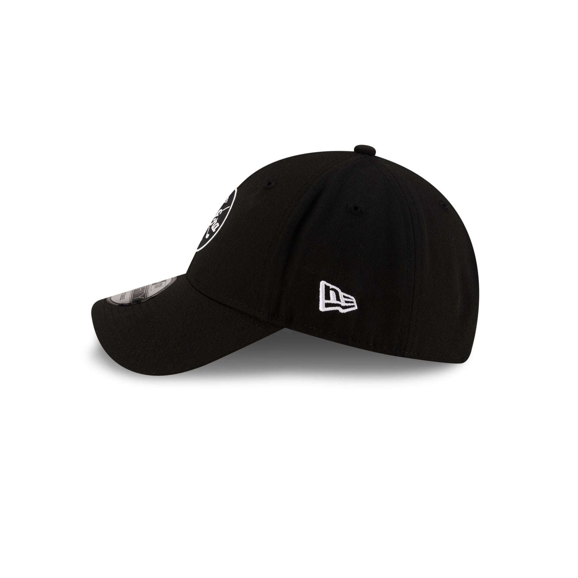 The New Era Golf Repreve Black 9FORTY Snapback features an embroidered New Era Golf logo at the front panels with an adjustable D-Ring closure at the rear.