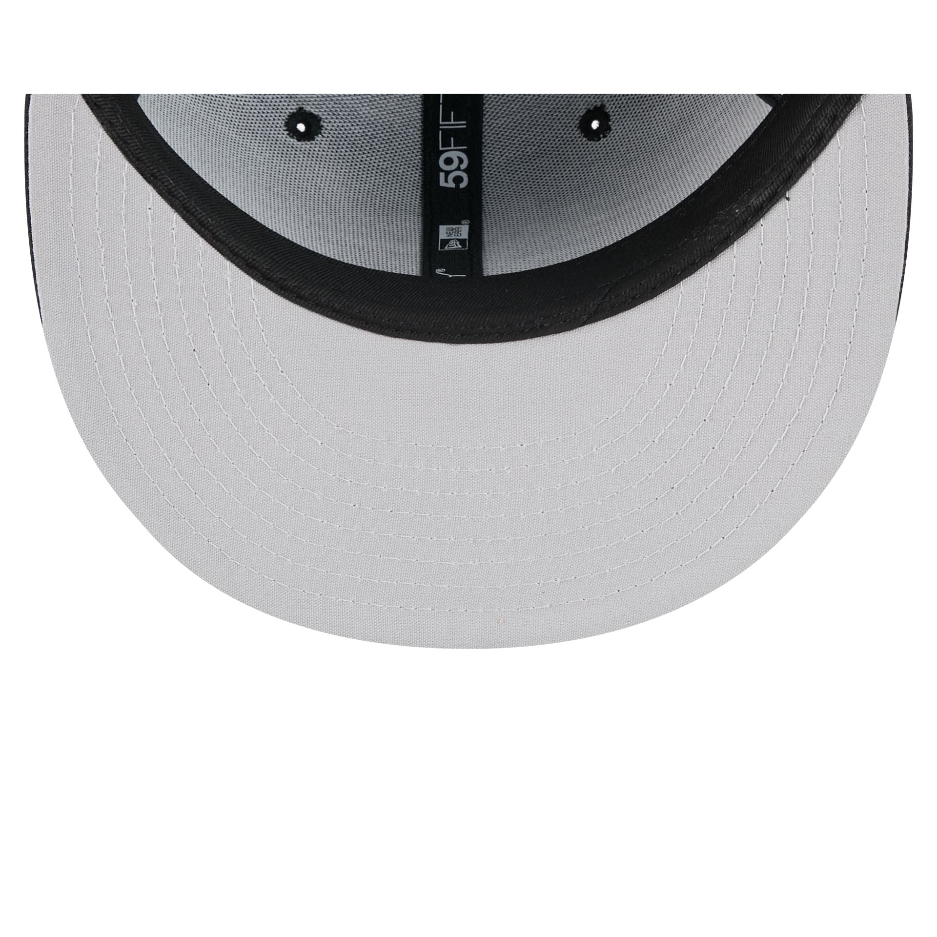 The New Hampshire Fisher Cats Theme Night Black 59FIFTY Fitted Cap features an embroidered Fisher Cats theme night logo at the front panels with a matching MiLB Batterman logo at the rear and a gray undervisor.