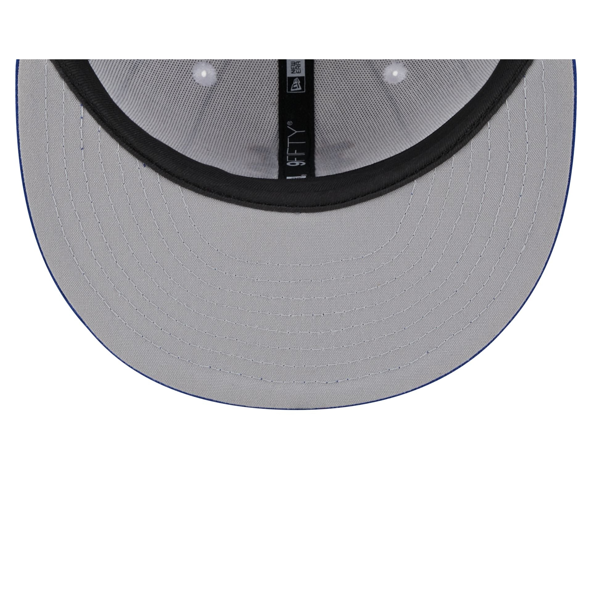 The New York Mets 2025 Batting Practice 9FIFTY Snapback features an embroidered Mets logo at the pinstripe front panels with a matching snapback closure at the rear. Additional details include a pivot knit fabrication, a blue visor, and a gray undervisor.
