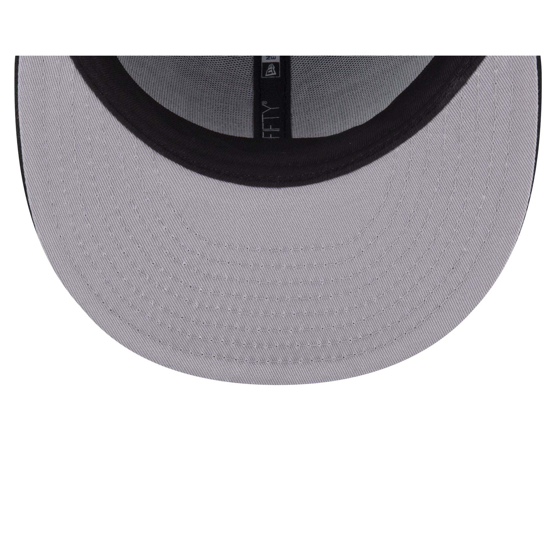 The Notre Dame Fighting Irish Black on Black 59FIFTY Fitted Cap features an embroidered Notre Dame logo at the front panels with a matching logo at the rear and a gray undervisor.