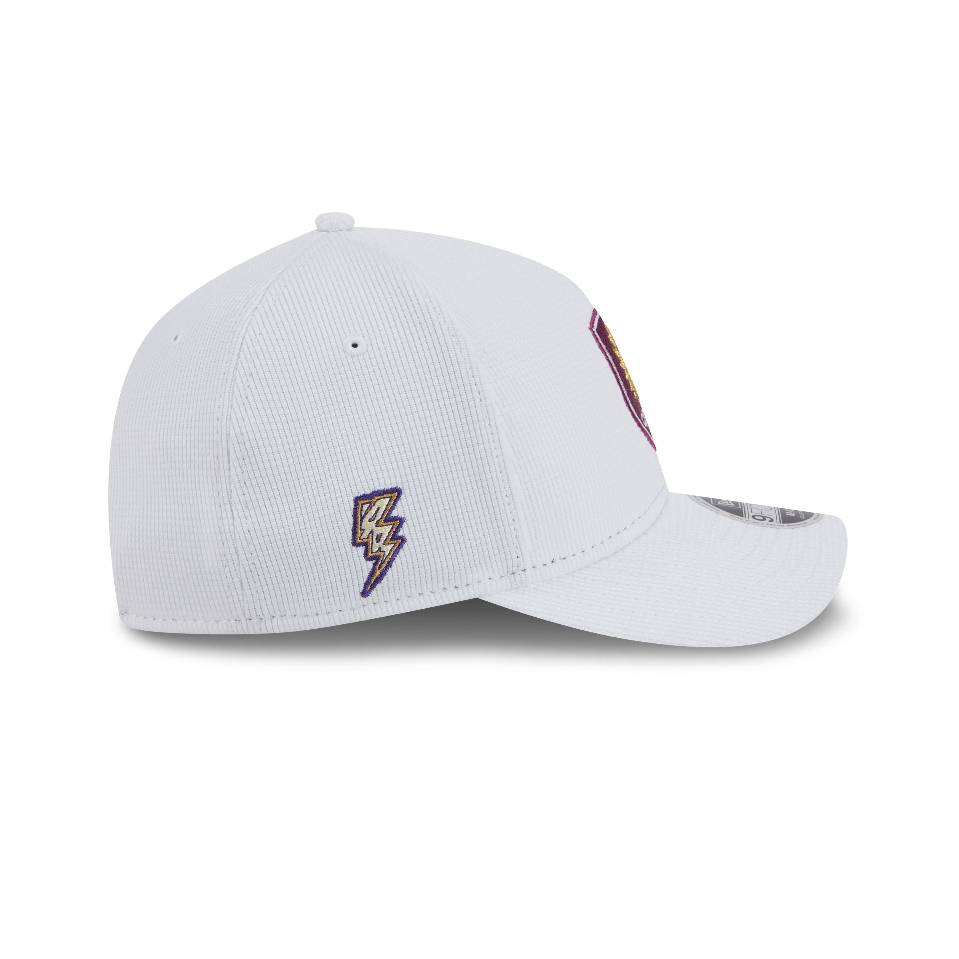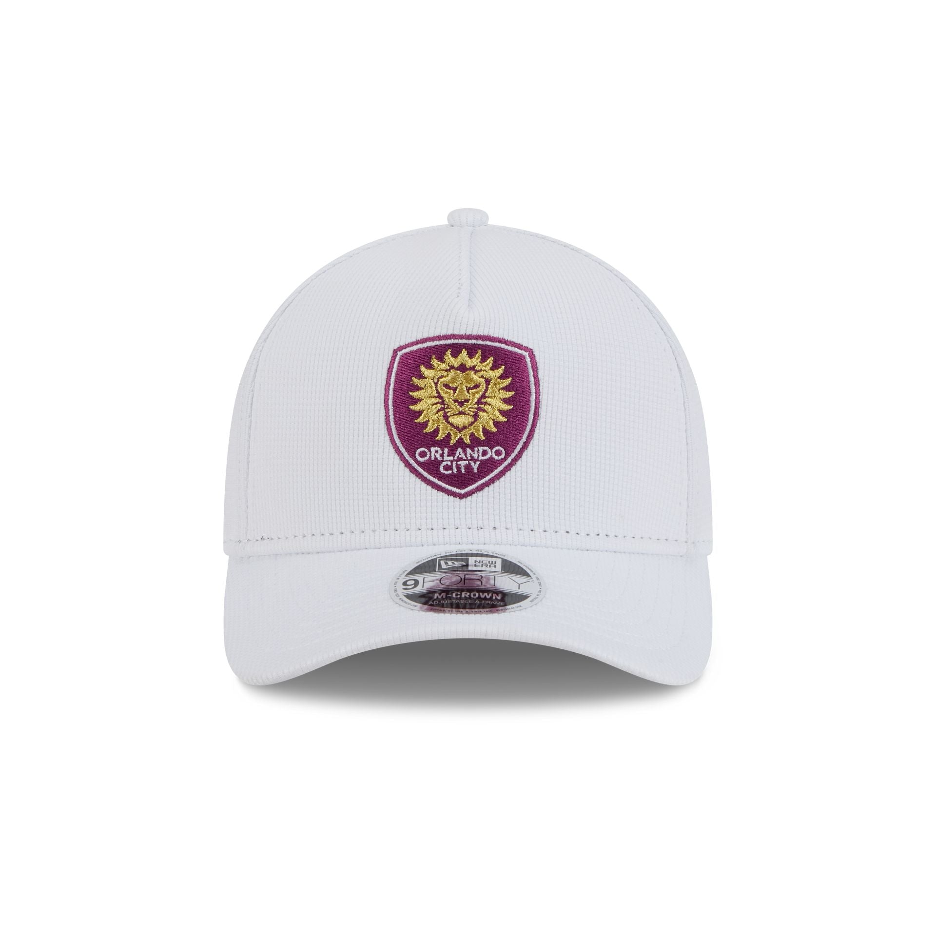 The Orlando City SC 2025 Jersey Hook 9FORTY M-Crown A-Frame Snapback features an embroidered Orlando City SC logo at the front panels with a patch at the right-wear side and a snapback closure at the rear.