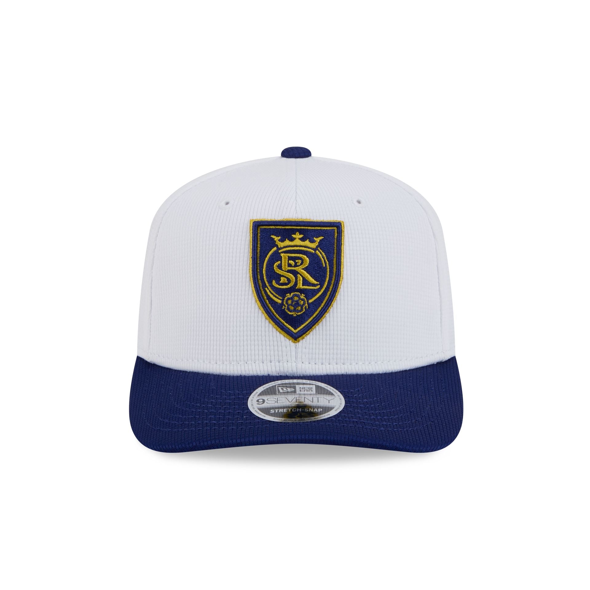 The Real Salt Lake 2025 Jersey Hook 9SEVENTY Stretch-Snap features an embroidered Salt Lake logo at the front panels with a patch at the right-wear side. Additional details include a logo above a snapback closure at the rear.
