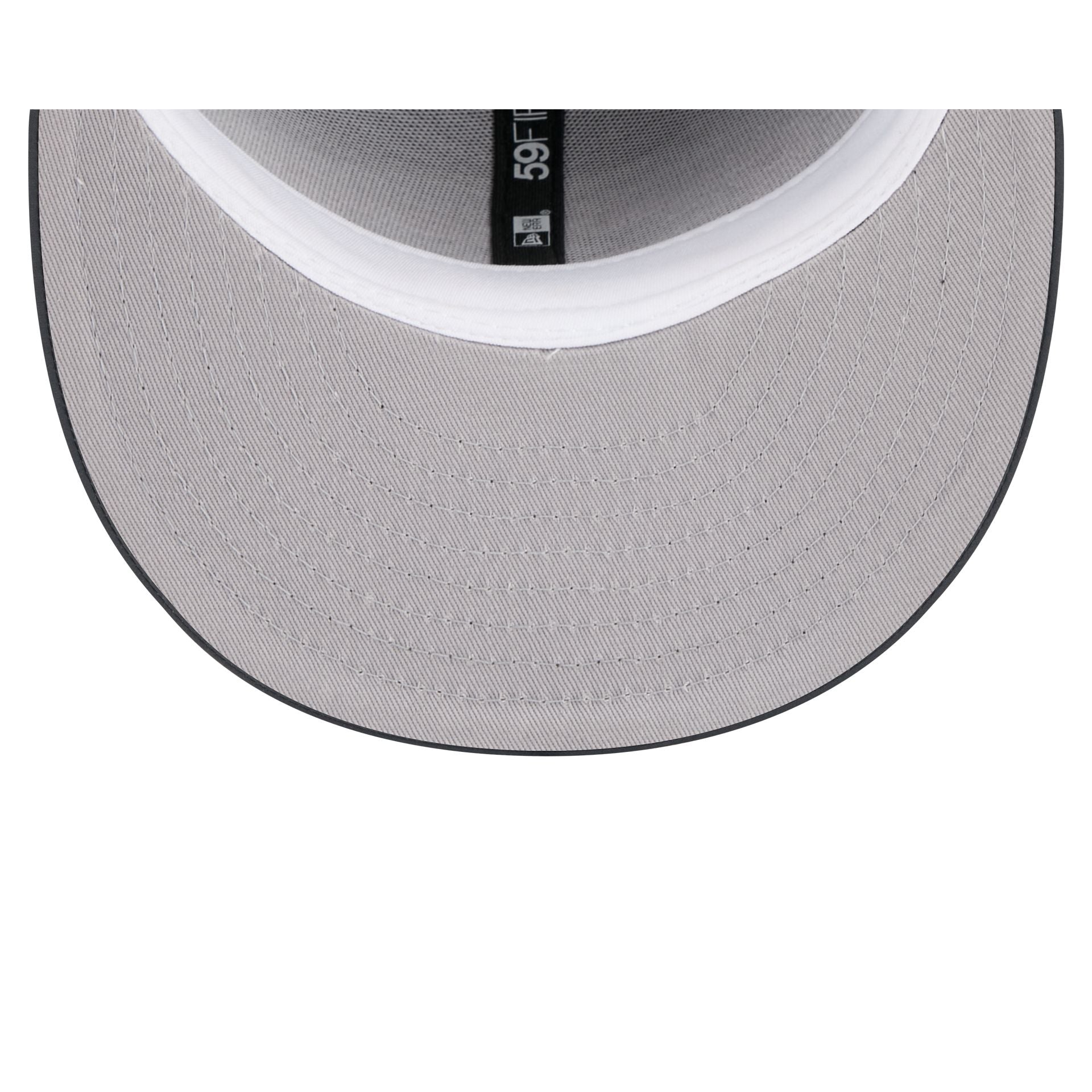 The San Antonio Spurs 1989-2001 Hardwood Classics 59FIFTY Fitted Cap features an embroidered vintage Spurs logo at the front panels with the NBA Logoman at the rear and a gray undervisor.
