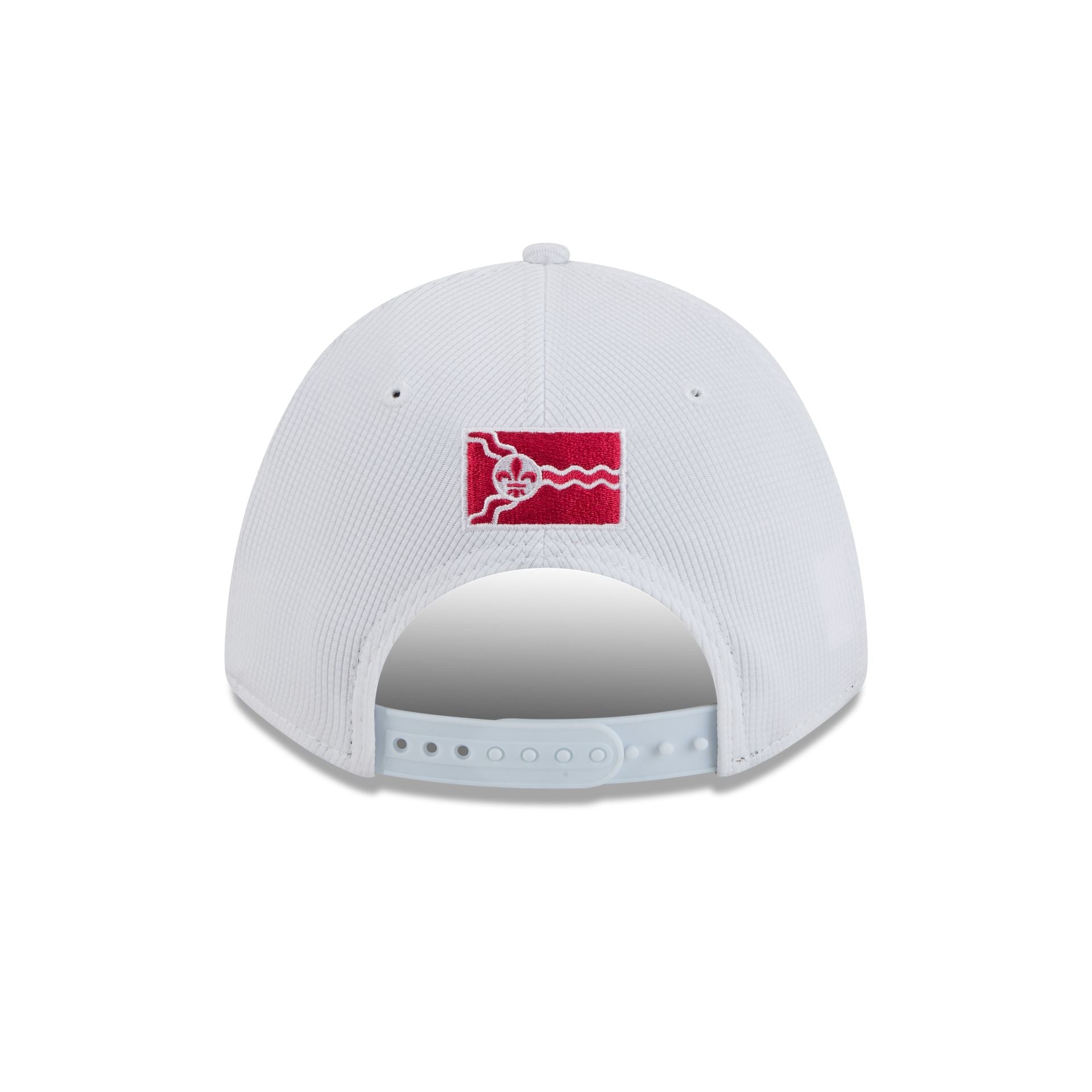 The St. Louis City SC 2025 Jersey Hook 9FORTY M-Crown A-Frame Snapback features an embroidered St. Louis City SC logo at the front panels with a patch at the right-wear side. Additional details include a logo above a snapback closure at the rear.