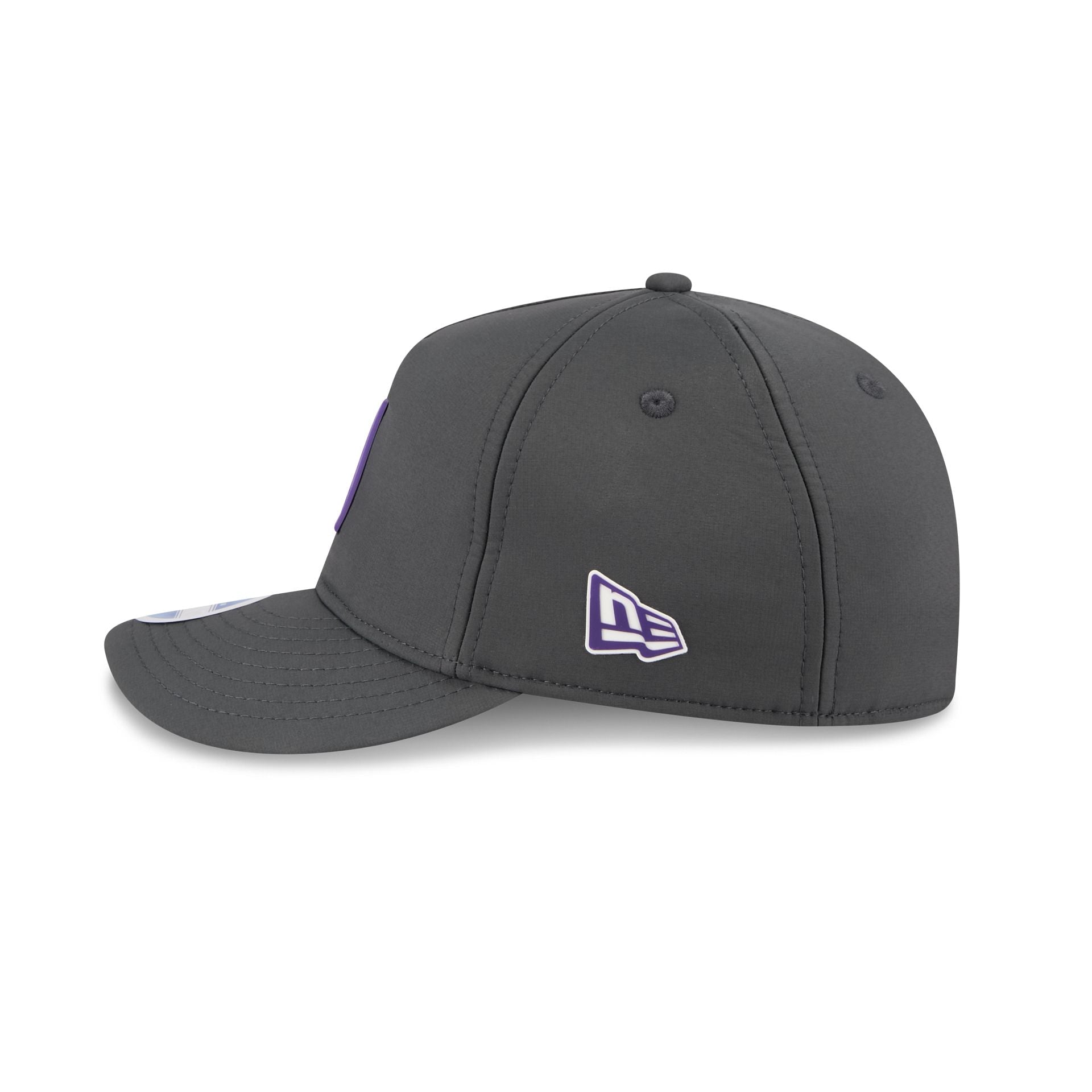 The Tennessee Titans 2025 Sideline Cold Weather Steel Clouds Retro Crown 59FIFTY A-Frame Fitted Cap features a sewn-down silicone Titans logo patch at the front panels with the Official NFL Shield logo at the rear. The cap has a water-repellent quill tech fabrication throughout, with an insulated crown and quick-dry cushioned sweatband. The undervisor is accented with a silicone transfer in the team’s colors.
