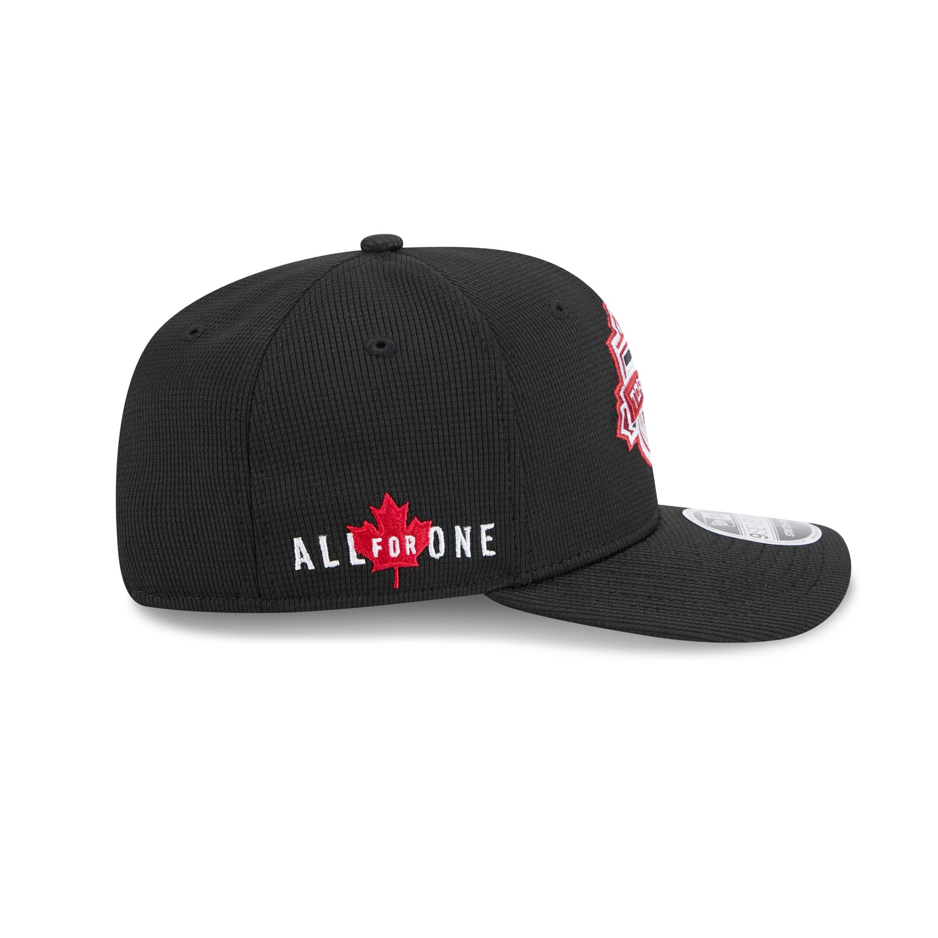 The Toronto FC 2025 Jersey Hook 9SEVENTY Stretch-Snap features an embroidered Toronto FC logo at the front panels with a patch at the right-wear side. Additional details include a logo above a snapback closure at the rear.