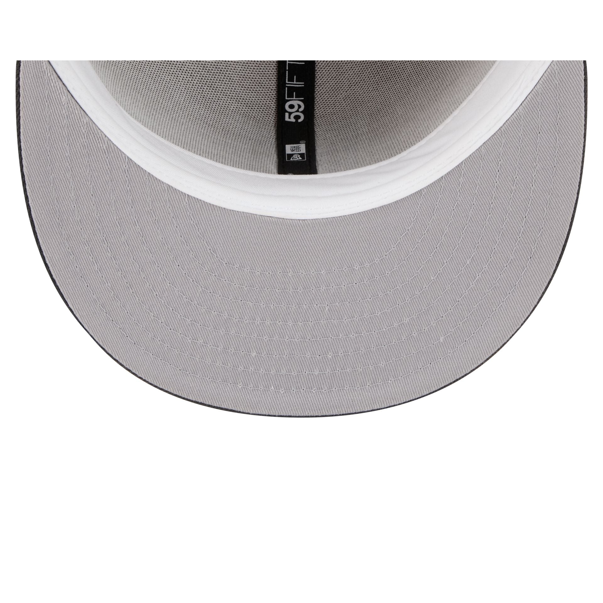 The Vegas Golden Knights Camel 59FIFTY Fitted Cap features an embroidered Golden Knights logo at the front panels with a matching NHL Shield at the rear, a team color visor, and a gray undervisor.